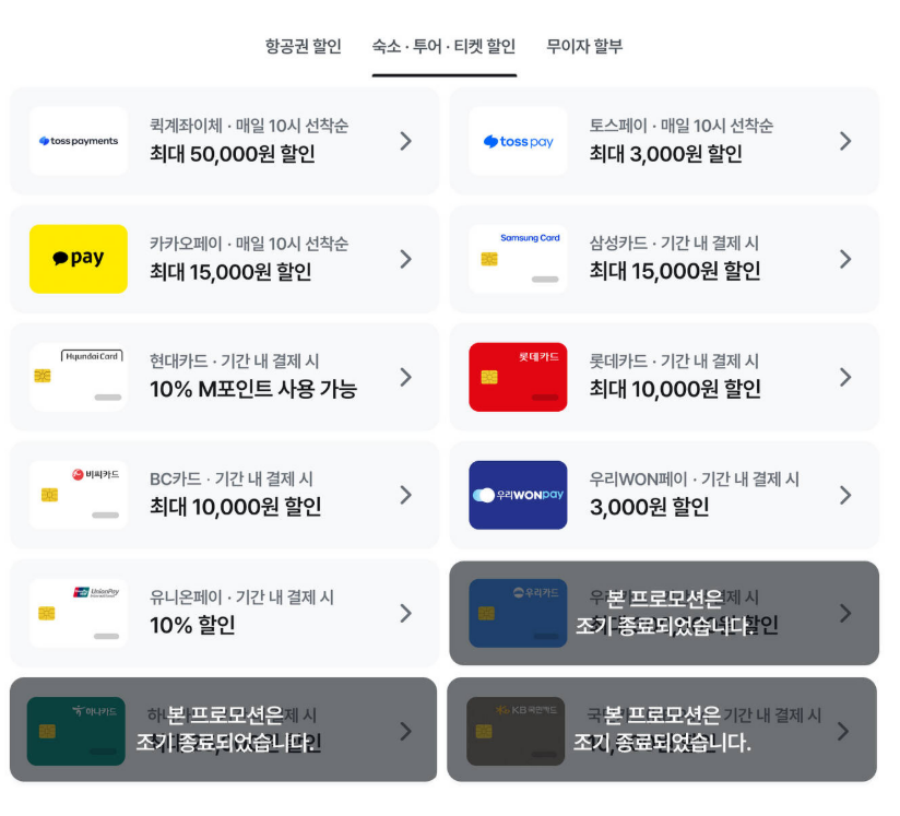 | 결제 수단 | 할인 내용 |