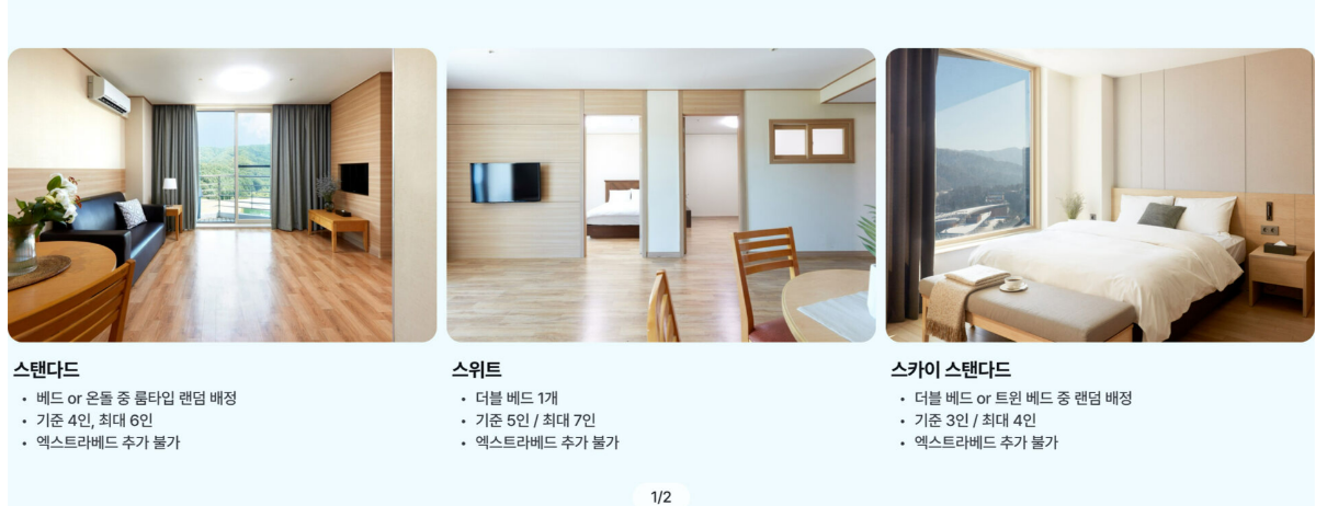 - 스탠다드: 기준 4인 / 최대 6인 / 온돌 or 룸타입 랜덤