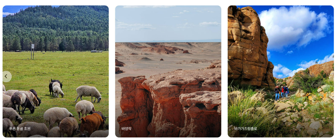 | 5박 6일 | 고비사막, 융링암, 바얀작, 바가가잘링 | 게르 숙박 5박, 전용차량, 가이드, BBQ 2회 | 972,000원~ |