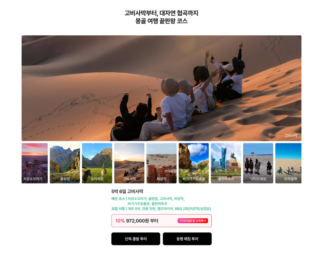 👉 마이리얼트립 몽골 프로모션 페이지에서 실시간 남은 좌석 및 상세 코스를 확인하고 예약하세요!