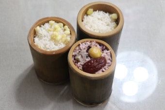 • 대나무 통밥 – 대나무 안에 밥과 견과류를 넣어 쪄낸 건강한 담양식